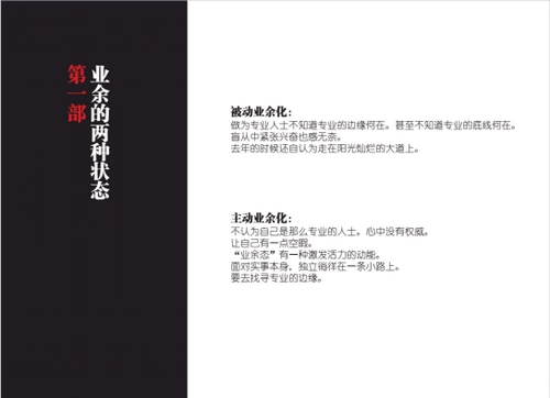 在“业余”部分的讲座中,主讲人提出了业余的两种状态:被动业余化和主动业余化。