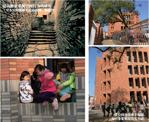 在此基础上,曾益海建筑师给我们看了他本人设计的一个小学。并提到最初为了遮阳而设计的深窗户,意外的成为了后来孩子们嬉戏的地方。进一步阐述了空间行为研究的重要性——要让空间变的善于沟通,而且贴近真实生活。