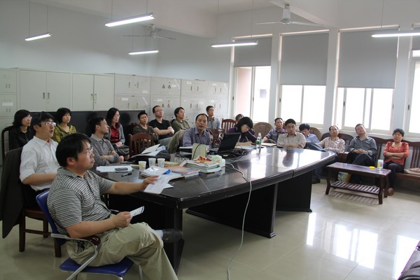 刘扬院长、桥梁系夏桂云教授和力学系全体在校教师参加了本次研讨。本次研讨内容是力学系的主攻学科方向之一“工程结构振动”的一部分,在座教师针对报告中的功能梯度管壳结构的力学模型、多尺度法、模态叠加法展开了深入探讨。