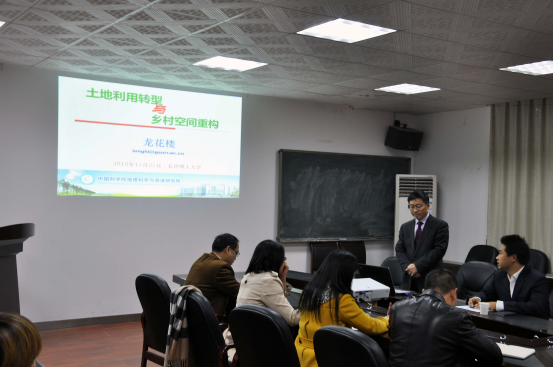 龙花楼研究员的讲座从土地利用转型的概念内涵、土地利用转型与乡村空间、土地整治与乡村空间重构、规划重构的土地管理策略、讨论等5个方面展开。