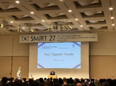 SMiRT27组织委员会主席、日本原子能研究所研究员Suyoshi Takada教授出席了本次开幕式并致欢迎词。本次研讨会共设17个专题会场超600个学术报告,内容包括断裂力学和结构完整性、内外部灾害和荷载特征、结构系统构件的建模、测试和响应分析等方面。
