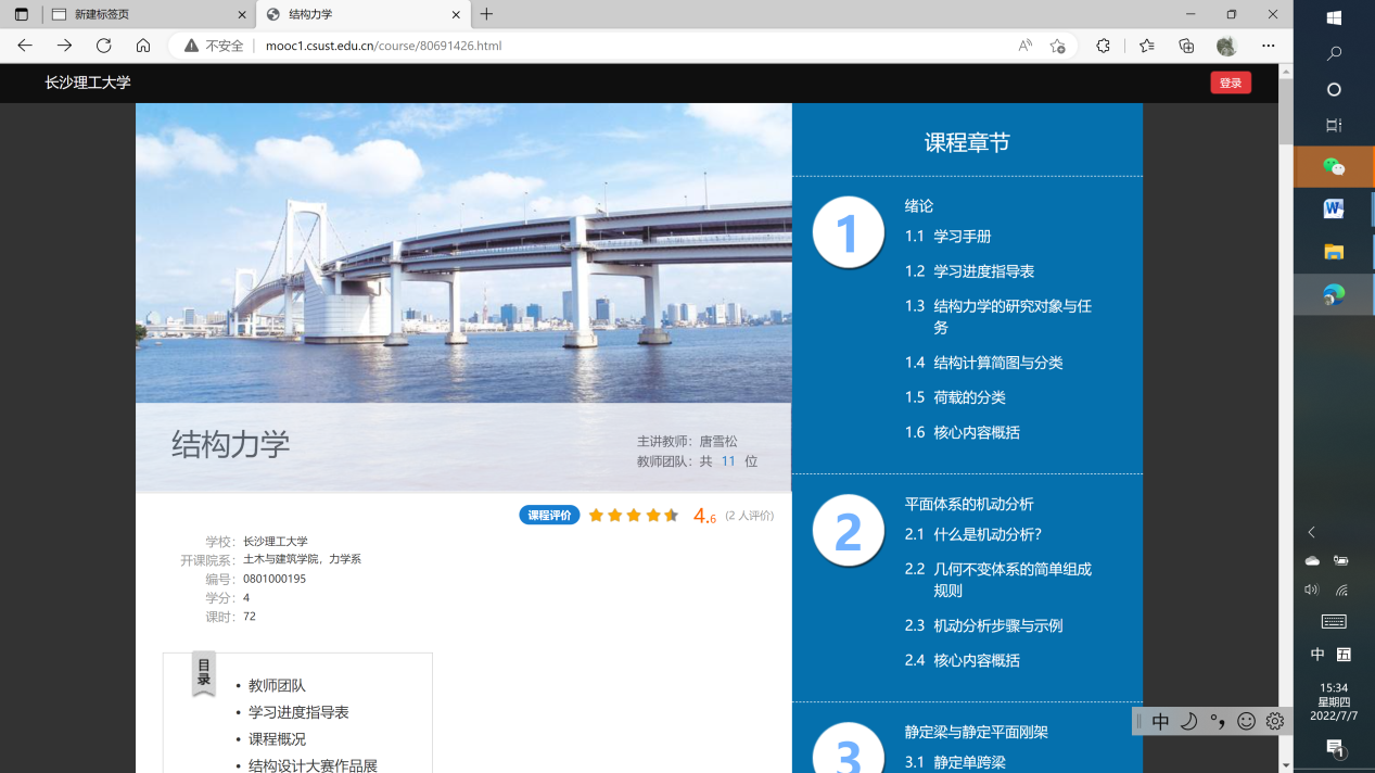 结构力学课程,2014年成为伟德betvlctor1946源于英国首门建成并投入使用的慕课课程,2018年成为门批湖南省精品在线开放课程。