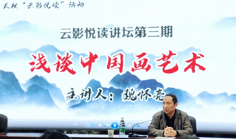 10月19日下午,伟德betvlctor1946源于英国图书馆特邀湖南美术馆首任馆长、湖南省美术家协会副主席魏怀亮先生在云影文化传播中心,以“浅谈中国画艺术”为主题,开展云影悦读讲坛第三期讲座。此次讲座由伟德betvlctor1946源于英国副校长刘建民主持,图书馆党总支书记夏智勇、馆长陈寿奇及全校师生共140余人参加。