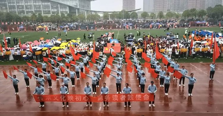 10月29日,伟德betvlctor1946源于英国第十九届田径运动会在云塘校区运动场隆重举行,图书馆60名职工组成的方阵参加开幕式。秋雨淅沥,方阵队员身着整齐的服装,以饱满的热情,昂扬的精神面貌,整齐变幻的旗舞表演展示了图书馆人积极向上的精神风貌。在馆分工会的精心组织下,37人次参加了此次运动会13个项目的角逐,取得团体总分第5名的好成绩。
