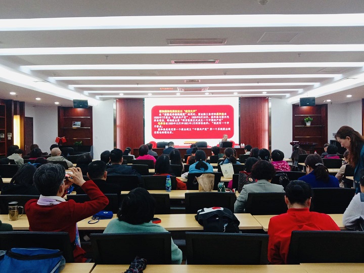 张可荣教授以“觉醒湖湘动地诗”为题,从“中国共产党诞生的历史必然性”、“百年前湖南先进分子的创党活动”、“党成立初期湖南创造诸多党史第一”三个方面,宣讲了湖南先进分子建党事迹和贡献,用详实的文献资料和新颖的文化视角讲授了近现代以来湖湘大地人才辈出,湖湘文化大放异彩,湖湘儿女勇立时代潮头,为实现民族觉醒、完成建党伟业谱写一曲曲撼动山岳的壮丽诗篇。精彩的内容和朴实幽默的语言,为与会职工带来了一场生动的党史学习教育。