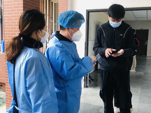 为落实上级疫情防控工作部署和要求,接校组织部紧急通知后,图书馆党总支高度重视,3月26日晚经组织发动,迅速成立了由党总支书记夏智勇、馆长陈寿奇带队,42名党员组成的图书馆党员抗疫应急突击队。29日上午,在夏智勇、刘利、方薇等馆领导带领下,20名图书馆党员志愿者在云塘体育馆短暂集结、部署后,迅速进入体育馆、学生宿舍等场所开展新一轮核酸检测工作。他们与辅导员一起协助医护人员负责核酸采集的扫码、贴标签等相关工作,大家默契配合、紧张有序,同时积极向师生宣传疫情防控知识,引导大家树立正确舆论导向,传播“抗疫”正能量。
