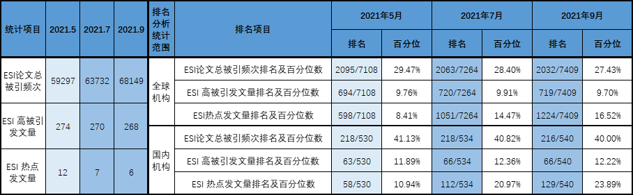 1)伟德ESI论文总被引频次近三期在持续增加。其中,7月比5月增加4435次,增幅为7.48%,9月比7月增加4417,增幅6.93%。
