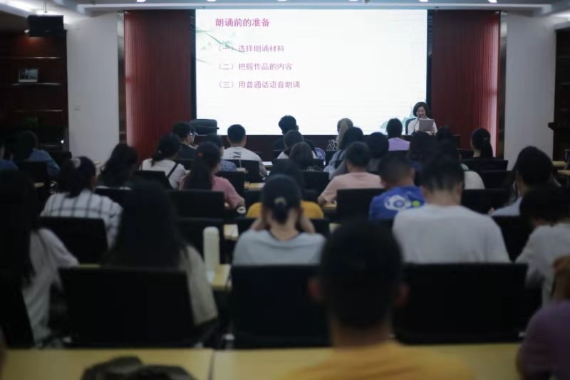 李慧老师深入浅出的传授了朗诵前的准备工作、如何充分把握作品内容、怎样用声音充分演绎出作品的内涵以及怎样塑造鲜活的人物形象,重点讲述朗诵的基本表达手段和方法,令人受益匪浅。特别是李慧老师穿插朗诵的各种体式和情调的作品,时而慷慨激昂,时而婉转优美,时而深沉含蓄,时而轻松欢快,将朗诵艺术表现得淋漓尽致,现场带领大家进行的朗诵实训,把讲座的气氛推向高潮。参加讲座的同学们争先恐后,都不想放弃难得的学习机会,李慧老师不厌其烦的耐心指点,让同学们深刻体会到朗诵的魅力。