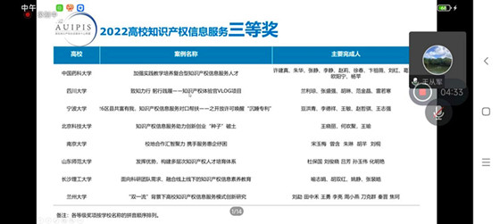 高校知识产权信息服务中心联盟(AUIPIS)2022年年会暨第五届学术研讨会于11月23日-25日在福州召开。会议公布了“2022高校知识产权信息服务”优秀案例评选结果,伟德报送的案例《面向科研团队需求、融合线上线下的知识产权信息素养教育》荣获三等奖。据了解,我省仅两所高校(另一所为中南大学)获得此项奖项。
