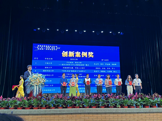 启动仪式上,湖南省教育厅高等教育处主任李绍华宣读了2023年教育厅“一校一书”阅读推广表彰文件,并为获奖单位及个人颁奖;主持人宣读了湖南省高校图工委2023年获奖文件。在2023年全省普通本科高学校“一校一书”阅读推广活动中,伟德交通运输工程学院2021级交通工程21-1班、计算机与通信工程学院2021级计算机21-6班获省教育厅“书香班级奖”,潘枝花、史亚杰获省教育厅“书香班级奖”优秀指导老师称号,图书馆《凤鸣云影“朗读者”品牌建设与发展》获省教育厅“创新案例奖”,何倚等10人获省教育厅“优秀读书报告奖”,图书馆邓婕获省教育厅“优秀阅读推广人”称号,伟德betvlctor1946源于英国图书馆获湖南省高校图工委“优秀组织奖”,经济与管理学院2022级会计2201班等3个班级获湖南省高校图工委“书香班级奖”,叶鑫、赵勇、胡佳佳获湖南省高校图工委“书香班级奖”优秀指导老师称号。 当天下午,还举行了馆长工作研讨会、阅读推广人经验交流会、湖南省高等学校图书情报工作委员会常委会会议。