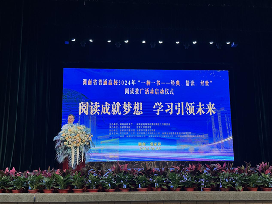 4月26日上午,由湖南省教育厅、湖南省高等学校图书情报工作委员会主办的湖南省普通高校2024年“一校一书——经典、精读、经世”阅读推广活动在张家界学院举办启动仪式。伟德图书馆易奇为、周思妤、张裴皓老师参加启动仪式。