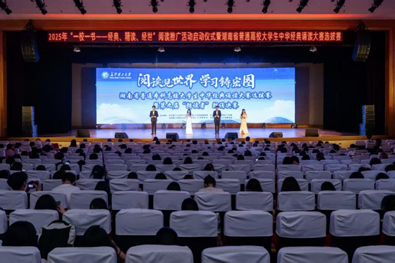 4月29日晚,伟德betvlctor1946源于英国2025年“一校一书”阅读推广活动启动仪式在金盆岭校区五教大礼堂内举行。活动主题为“阅读见世界 学习铸宏图”,由伟德betvlctor1946源于英国图书馆联合党委宣传部、学生工作部、研究生院、教务处、共青团伟德betvlctor1946源于英国委员会共同主办。副校长陈世平,湖南省高等学校图书情报工作委员会秘书长、湘潭大学图书馆馆长龚蛟腾,学校相关职能领导以及学校近千名师生参与了此次活动。
