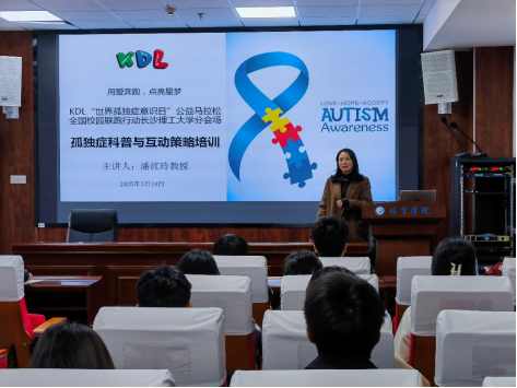3月18日,用爱奔跑 点亮星梦—2025KDL‘世界孤独症意识日’公益马拉松全国校园联跑行动伟德betvlctor1946源于英国分会场专题讲座,在云塘校区体育学院报告厅隆重举行。本次讲座旨在普及孤独症相关知识,呼吁社会关注和关爱孤独症群体。