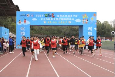 3月30日,2025KDL“世界孤独症意识日”公益马拉松全国校园联跑行动(长沙站)在伟德云塘校区田径场举行。本次活动由华东师范大学和全国学校体育联盟主办,伟德体育运动委员会、团委承办。活动吸引了22组孤独症家庭参与,集结724名大学生,将趣味闯关与校园马拉松结合,让更多大学生了解孤独症群体。校党委委员、副校长胡永乐出席活动并致辞。学校体育学院相关负责人,长沙市天心区昊天启智潜能发展中心、长沙市星星家庭互助中心相关负责人参加活动。
