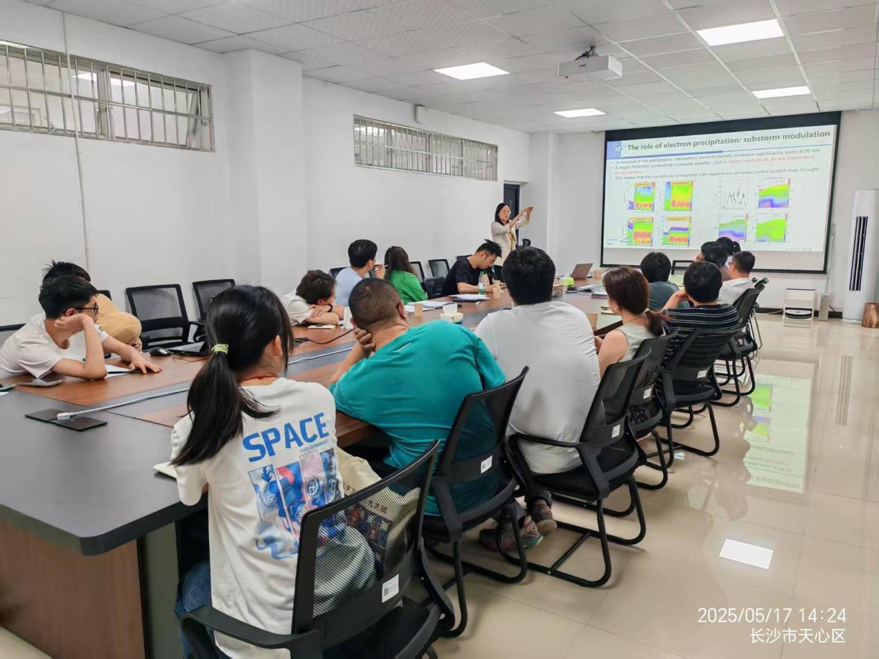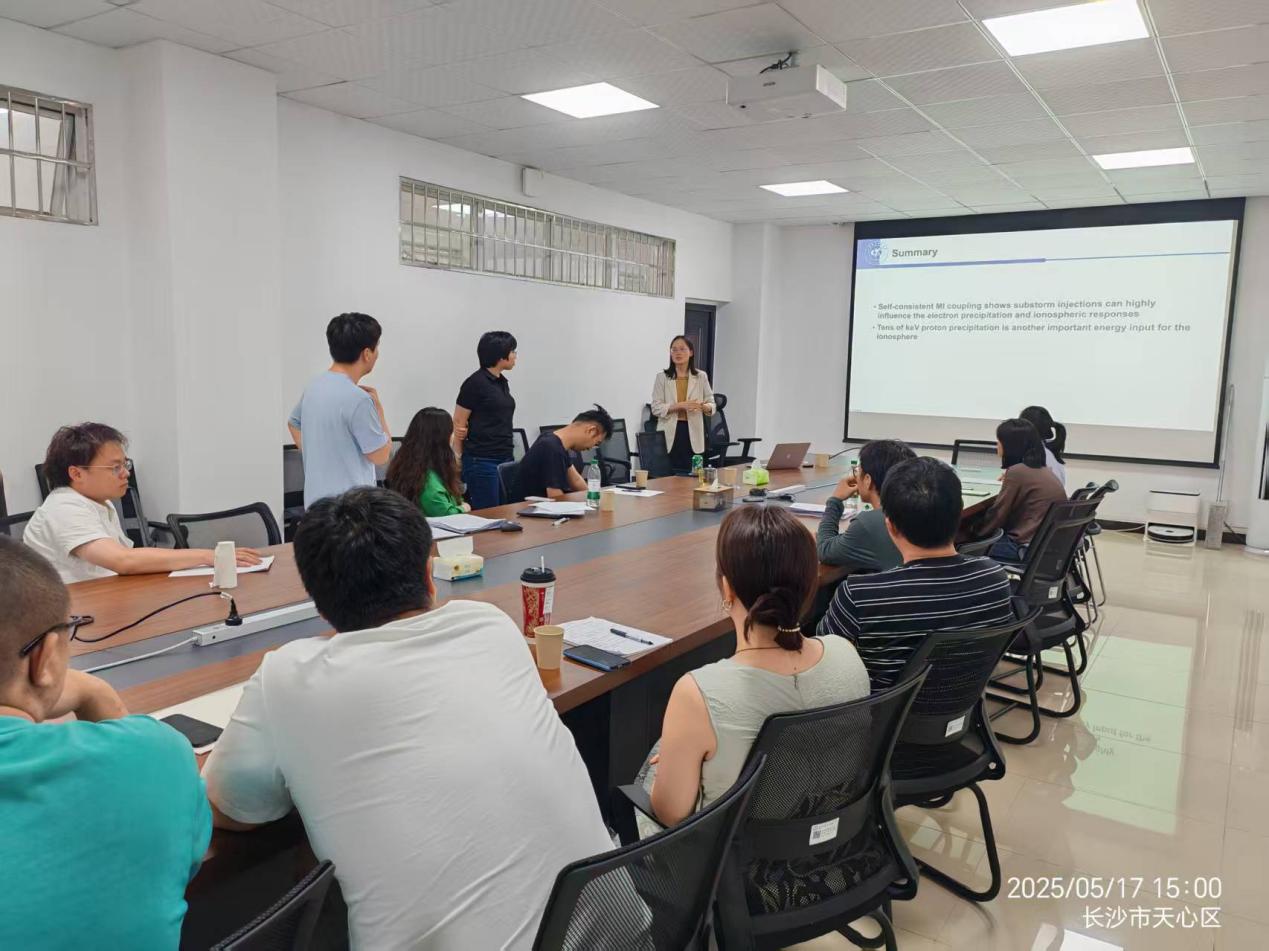 报告中,於教授系统阐述了磁层-电离层耦合机制,重点介绍了其团队自主研发的国内首个内磁层环电流模型STRIM,通过对比电子与质子沉降的差异化作用,深入分析了不同粒子沉降对电离层扰动的影响。在互动环节,於教授与师生就相关前沿问题进行了深入交流。报告内容详实生动,为师生提供了宝贵的学术交流机会,进一步营造了学院浓厚的科研氛围。