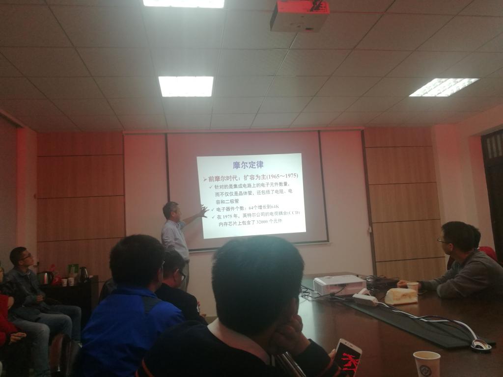 报告会上,张兴教授针对 “前摩尔时代”、“摩尔时代”、“后摩尔时代”三个不同阶段对微纳电子器件的发展进行了详细介绍,并阐述了后摩尔时代微纳电子器件发展所面临的挑战,并从 “More Moore’s Law”、“More Than Moore’s Law”、“Beyond Moore’s Law”、“Macro-Electronic”四个方面分析了微电子技术的发展趋势。最后,张教授还一一解答了老师和学生们的提问。会后,张教授还为师生们的研究工作给予了很好的指导。张教授严谨的态度,渊博的知识,风趣的语言,给老师和学生们留下了深刻的印象。