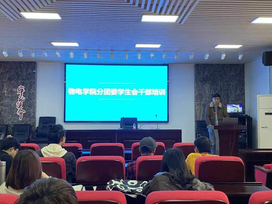 2021年4月22日下午17点,物电学院开展分团委学生会干部培训,会议由学院分团委书记姚巍老师主持,物电学院主要学生干部到场参加会议。