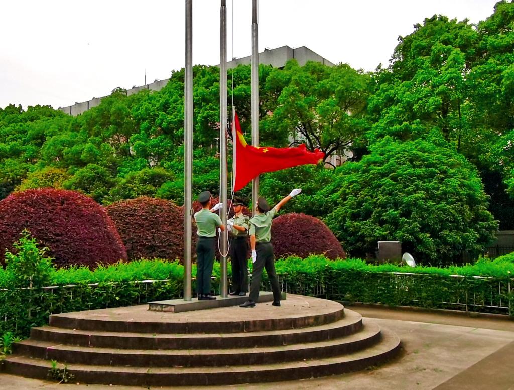 7点,升旗仪式正式开始,在全体师生的注目礼下民兵连队伍步履坚定,气势昂扬,护送国旗至升旗台前。伴随着庄严的《中华人民共和国国歌》奏响,五星红旗冉冉升起,迎风飘扬。全体师生庄严肃穆,行注目礼。同学们在国旗下进行庄严宣誓,“志存高远,坚定信念;热爱祖国,服务人民;勤奋学习,自强不息;遵纪守法,弘扬正气;诚实守信,严于律己;明理修身,团结友爱;勤俭节约,艰苦奋斗;强健体魄,热爱生活。”声音铿锵有力,传递着大家的爱党爱国之情,报国强国之志。
