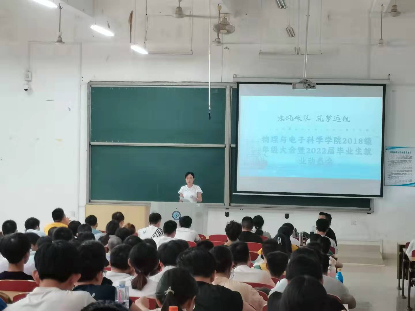 2021年9月14日,物电学院召开了2018级年级大会暨2022届毕业生就业动员大会,学院党委副书记宋国宁、研究生辅导员蒋琳媛出席了会议,会议由18级年级辅导员王中兴主持。