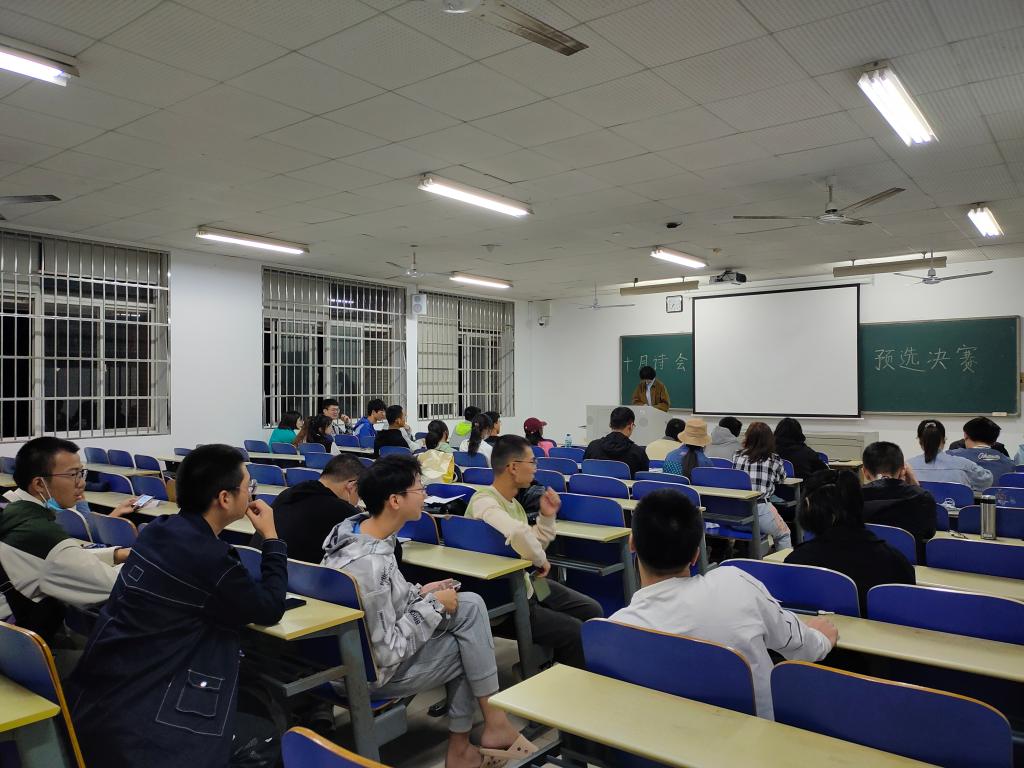 10月10日晚七点,物电学院“十月诗会之知识抢答赛”小组对抗赛在云塘校区拉开序幕,比赛由院团委学生会主席团、学习部成员主持。