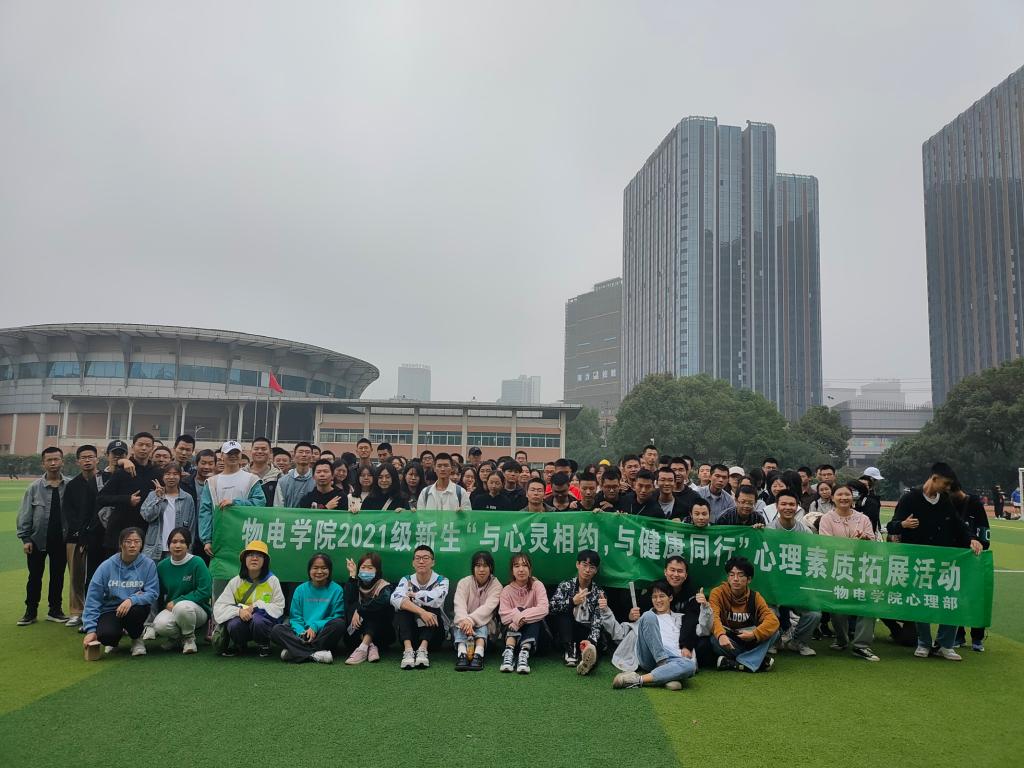 11月6号上午9点,物电学院2021级新生“与心灵相约,与健康同行”主题素质拓展活动在金盆岭校区田径场举行。本次活动由学院心理部组织,五十余名新生代表参加活动。