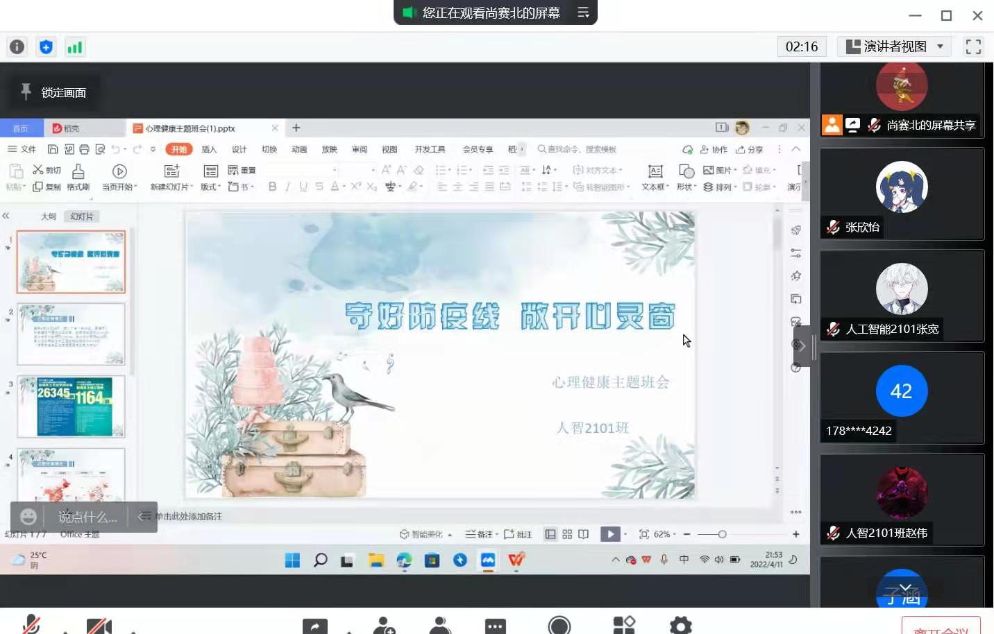 物电学院召开“守好防疫线,敞开心灵窗”班级健心活动