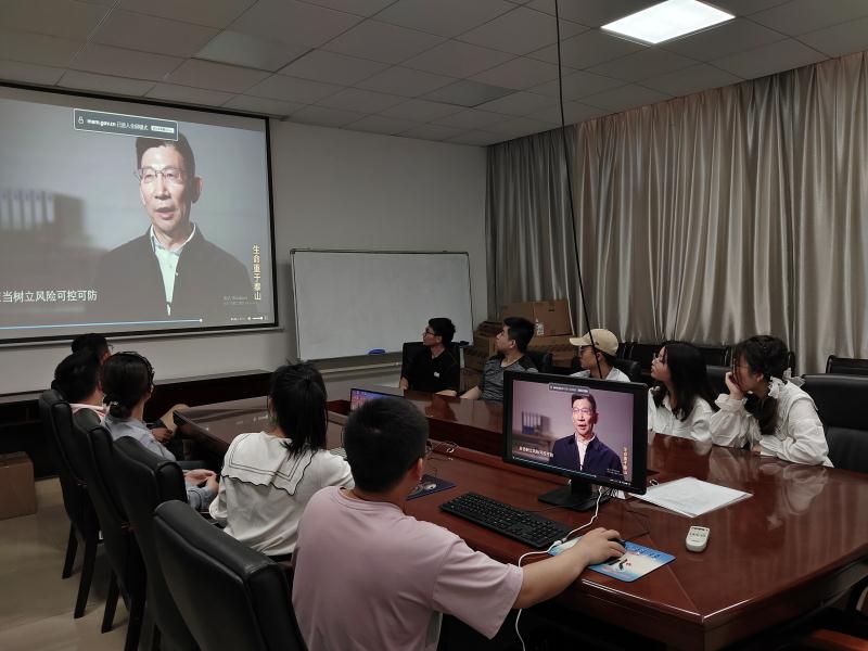 会上,蒋老师要求全体研究生以实验室为单位组织观看《生命重于泰山——学习习近平总书记关于安全生产重要论述》电视专题片,并线上组织全体同学学习了《中华人民共和国安全生产法》。告诫同学们要提高安全防范意识,校外聚会用餐选择正规场所,实习租房和校外住宿时多考察住所周边环境,不在危房附近停留;平常走路也要多加注意,谨防高空坠物,切实保障自身的安全问题。
