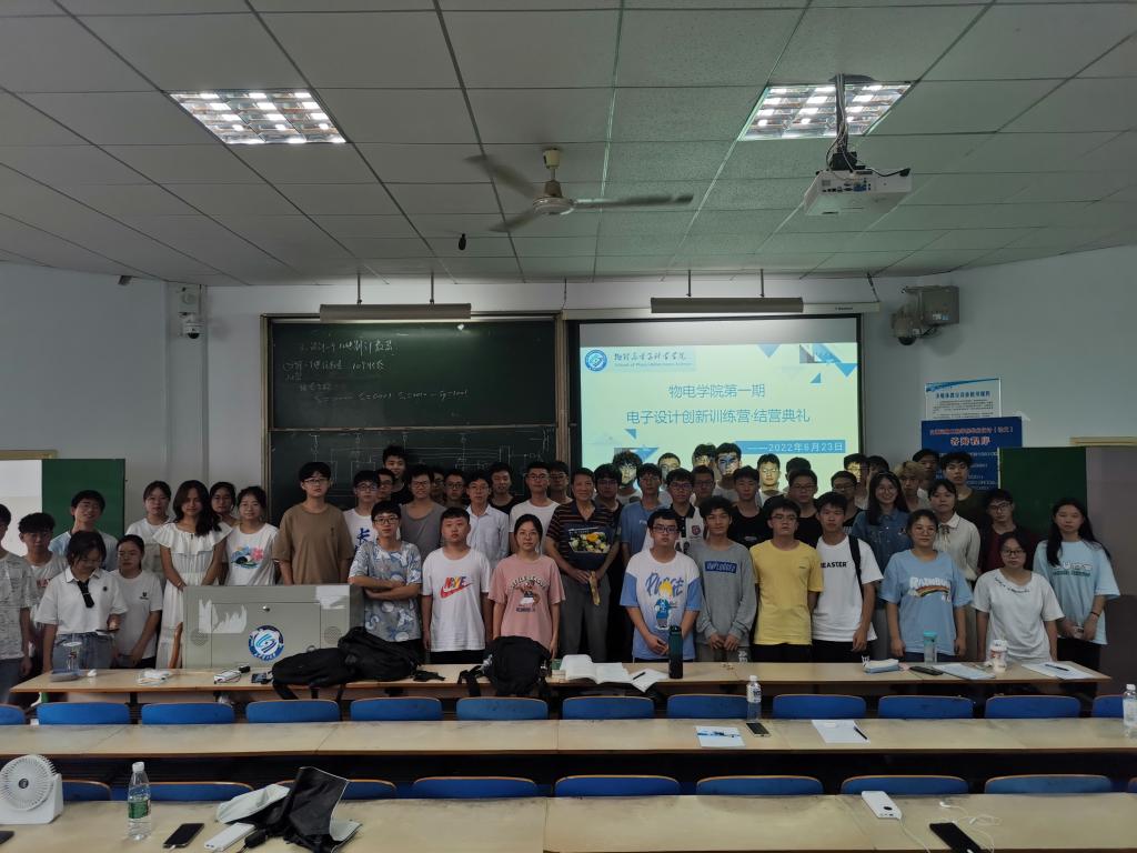 6月23日下午五点,物电学院在金盆岭6教举行物电学院第一期电子设计创新训练营结营典礼。结营典礼由21级辅导员赵俊程主持,训练营授课老师张一斌教授出席本次典礼。