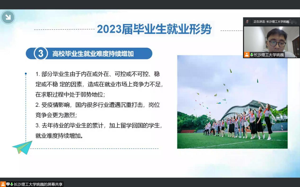 最后,姚老师总结并给予同学们鼓励,此次大会圆满结束,祝2023届毕业生寻梦有志、逐梦有行、圆梦有期、胸怀家国、尚公尚能、砥砺奋进!