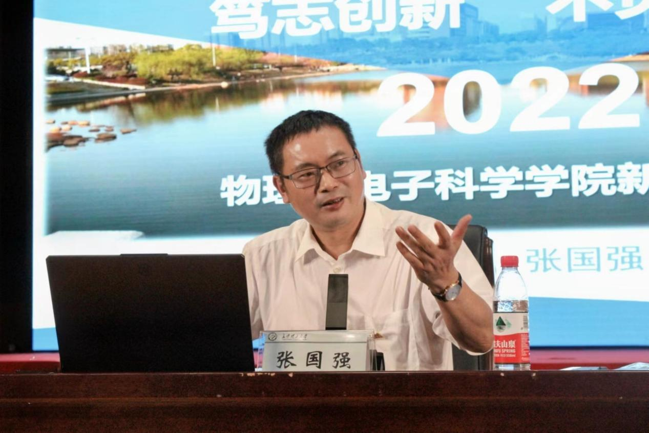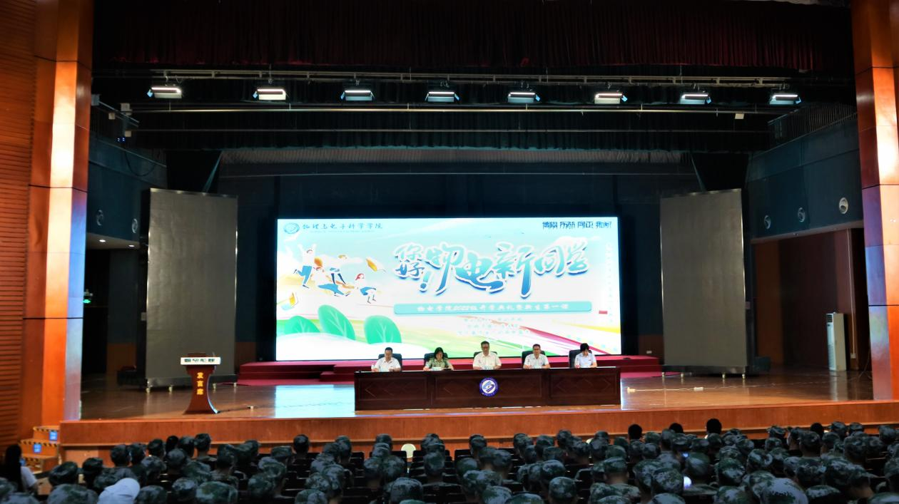 2022年9月7日晚上,物电学院于云塘校区大会堂举行2022级新生开学典礼暨新生开学第一课。全体院领导、新生班主任、2022级本科新生及研究生新生参加会议,新生家长线上参会。本次会议由院党委副书记宋国宁主持。