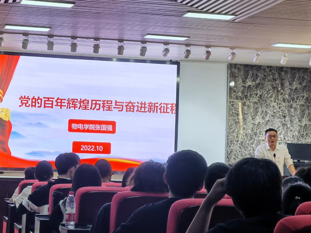2022年10月25日下午16:00,物电学院分党校在理科楼B413进行了第40期100余名入党积极分子第一次培训。院党委书记张国强就《党的百年辉煌历程与奋进新征程》对学员们进行授课。