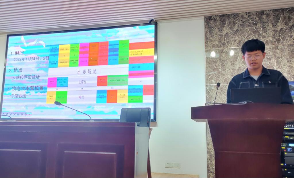 在本次动员大会中,廖运康详细介绍了本次运动会的比赛时间与地点以及其他的各项细节,帮助所有运动员熟知运动会流程,以确保运动会的顺利开展。
