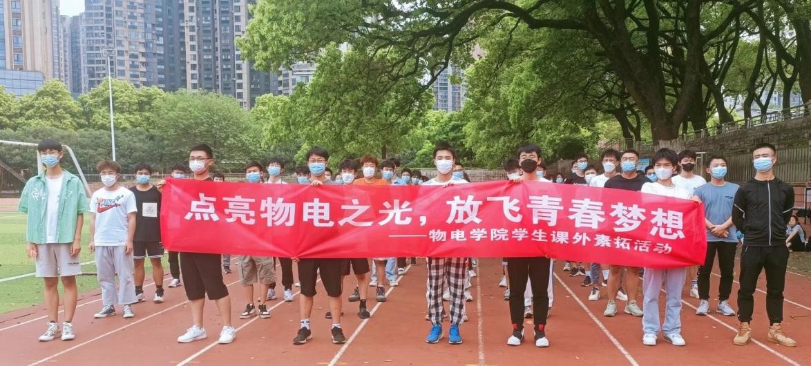 2022年4月12日下午14:30,物电学院于伟德betvlctor1946源于英国金盆岭校区田径场开展了“点亮物电之光,放飞青春梦想”21级学生素质拓展活动,物电学院21级辅导员赵俊程以及21级各班班委参与了此次素质拓展活动。