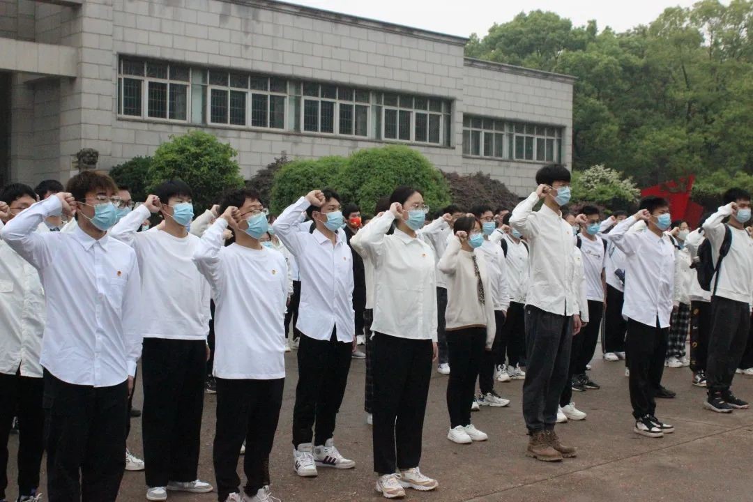 之后,由物理2101班张爱文同学带领100名团员代表举行重温入团誓词仪式,百名团员向前一步,高举右拳,面向鲜红的团旗庄严宣誓。口述百年誓词,心怀万顷河山。团员们牢记入团誓词,不断叩问初心、守护初心,不断坚守使命、担当使命,始终做到初心如磐、使命在肩。