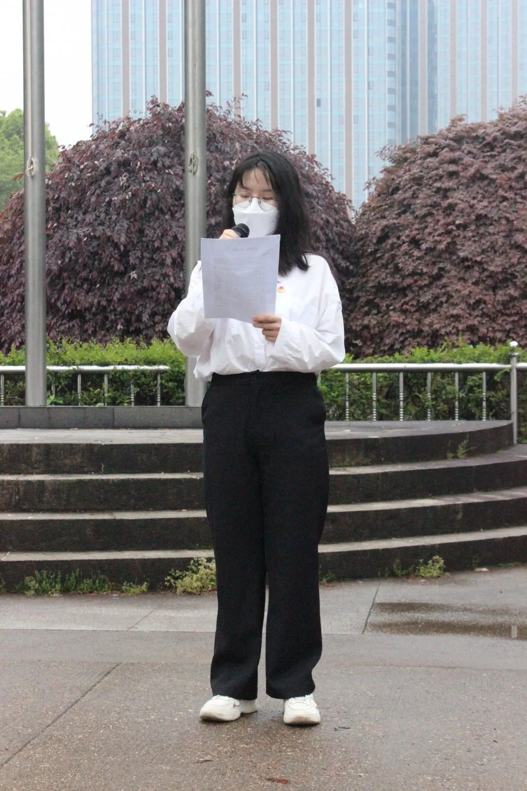 升旗仪式结束后,电信2105班陈佳怡同学上台发表主题为“百年征程,赤心向团”的国旗下讲话,以此献礼建团100周年,展现了新一代共青团成员的应该有的精神面貌,更坚定了新一代共青团员的初心使命。