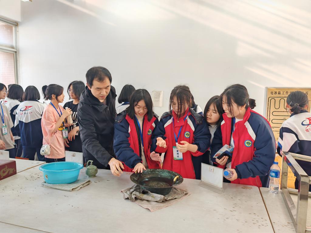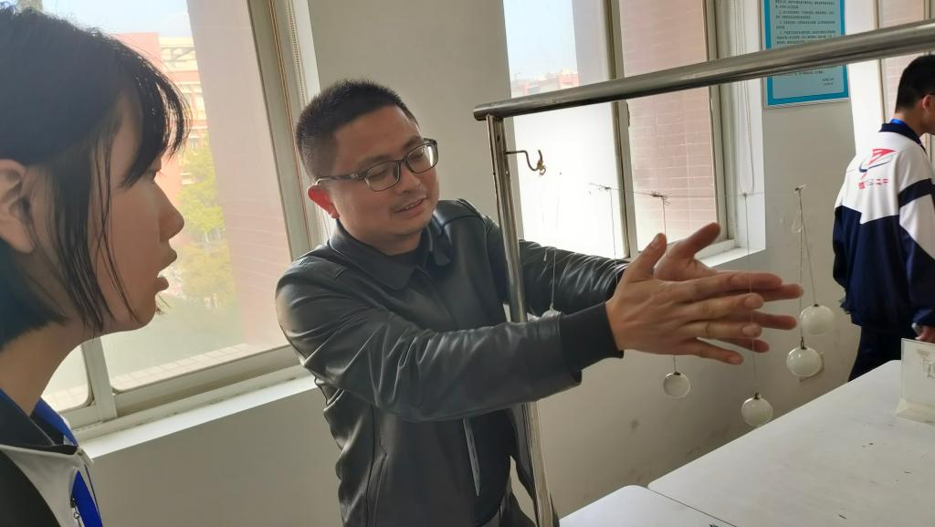 随后,醴陵二中的同学来到云塘校区实验楼B402实验室亲手对各种有趣的实验进行动手操作,在共振演示、科里奥力演示(转盘)、椎体爬坡、转动惯量演示、逆风行舟……等实验中,大家都在互相讨论,实验室充满了一片欢声笑语。行是知之始,知是行之成,同学们在实践中不仅收获了快乐,同时对知识的了解也更为透彻。
