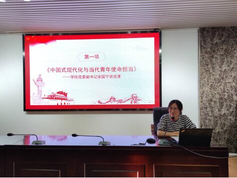 会议开始,物电学院党委副书记宋国宁以《中国式现代化与当代青年使命担当》为主题,为2023届毕业生党员上专题党课。她从中国式现代化的五个特征、九个方面的本质要求结合当代青年应有的使命担当,鼓励毕业生党员做有理想、敢担当、能吃苦、肯奋斗的新时代好青年,在即将毕业时“站好最后一班岗”,发挥党员先锋模范带头作用。在新的学校和新的工作岗位上时刻以一名党员的标准严格要求自己,主动学习,用党的新理论指导实践,擦亮青春底色。主动关心身边同学的学业、生活及就业情况,与老师们一起助力2023届毕业生的安全稳定与顺利毕业。