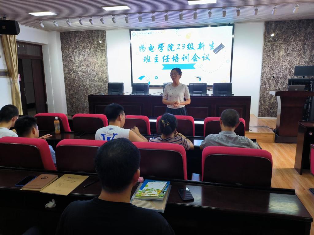 为全面加强班主任队伍能力素质,提升新生班主任工作实效,落实2023级新生入学相关事宜,2023年9月19日,物电学院在理科楼B413举行2023级新生班主任培训会。院党委副书记宋国宁,23级新生辅导员姚巍,23级新生班主任参会。