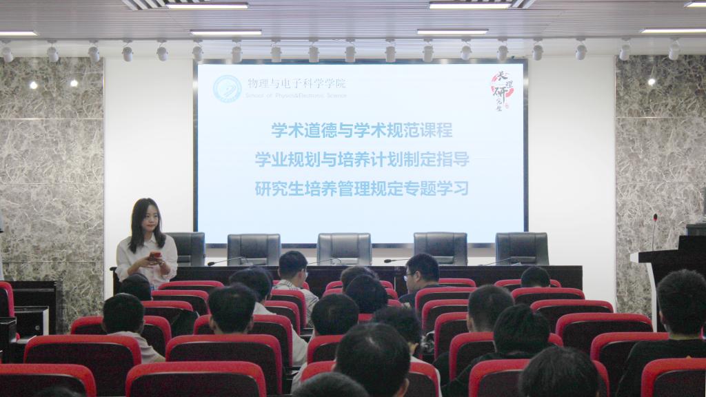 为帮助新生尽快适应研究生阶段的学习,促进学院良好学风的养成,培养研究生的学术规范意识,提高研究生学术道德水平,9月21日下午2:00,物电学院研究生入学教育之学术道德与学术规范、研究生培养管理规定专题学习会在理科楼B413举行。本次学习会由院党委委员鲁耿彪、科研办主任任鹏主讲,研究生辅导员蒋琳嫒主持,2023级全体研究生参加。