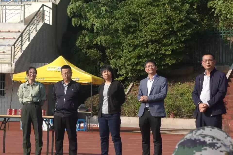 10月11日上午,物电学院党委书记张国强、副院长(主持工作)张卫兵、院党委副书记宋国宁、副院长范志强、刘斯等领导来到云塘校区田径场看望慰问2023级参训新生及教官。