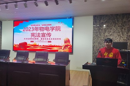 为更好地宣传宪法知识,提升研究生的宪法意识和法治素养,12月6日下午2:30,物电学院研究生宪法宣传周主题活动在理科楼B413举行。