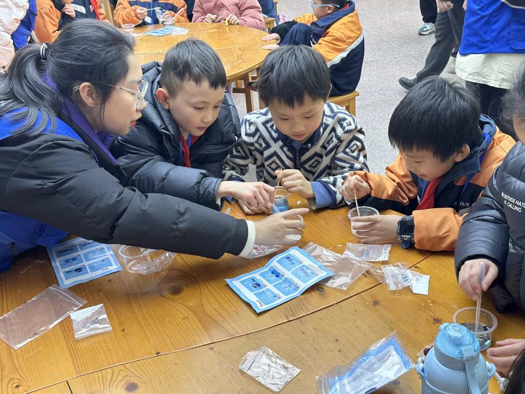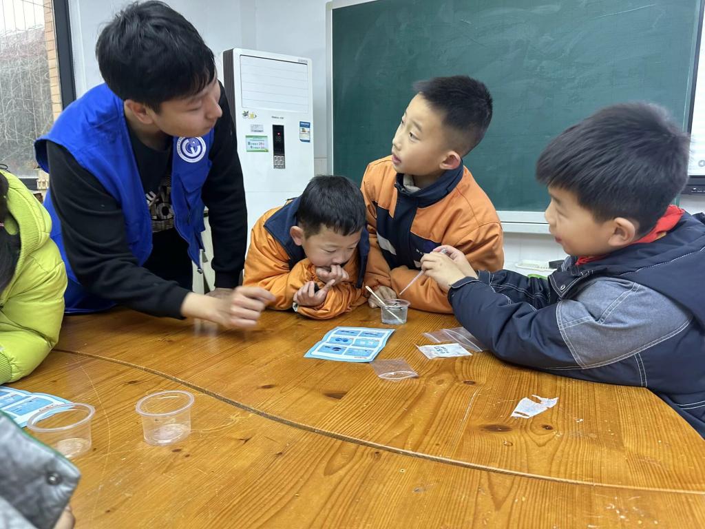 本次科普活动以花青素的酸碱指示为主题,由23级电信王子衡同学授课并展开,小朋友们被分为五组积极参与到活动中来。每个小组都有效且顺利的完成了实验目标,每位学生都对实验过程以及实验结果表现出了浓厚的兴趣。