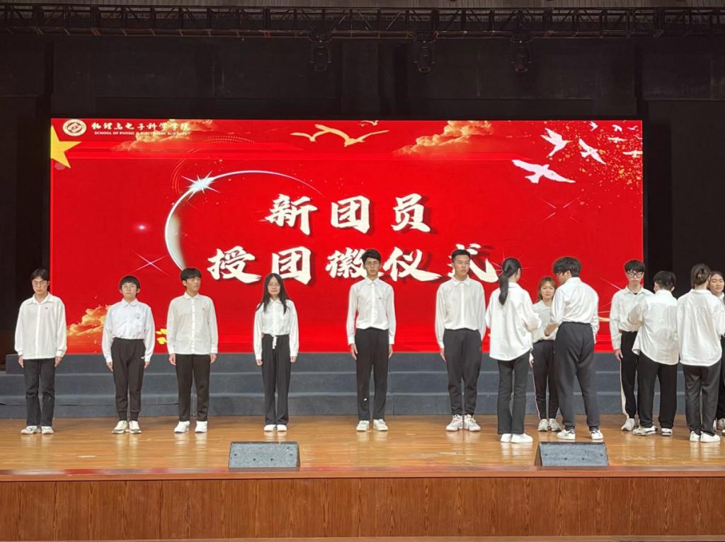在此之后,举行了新团员授团徽仪式,由高年级团员向新发展团员授予团徽,随后全体学生起立齐唱共青团团歌。在阵阵嘹亮的团歌中,2023级全体团员展现了坚定不移跟着团走,为中华民族伟大复兴贡献自己力量的坚定决心。