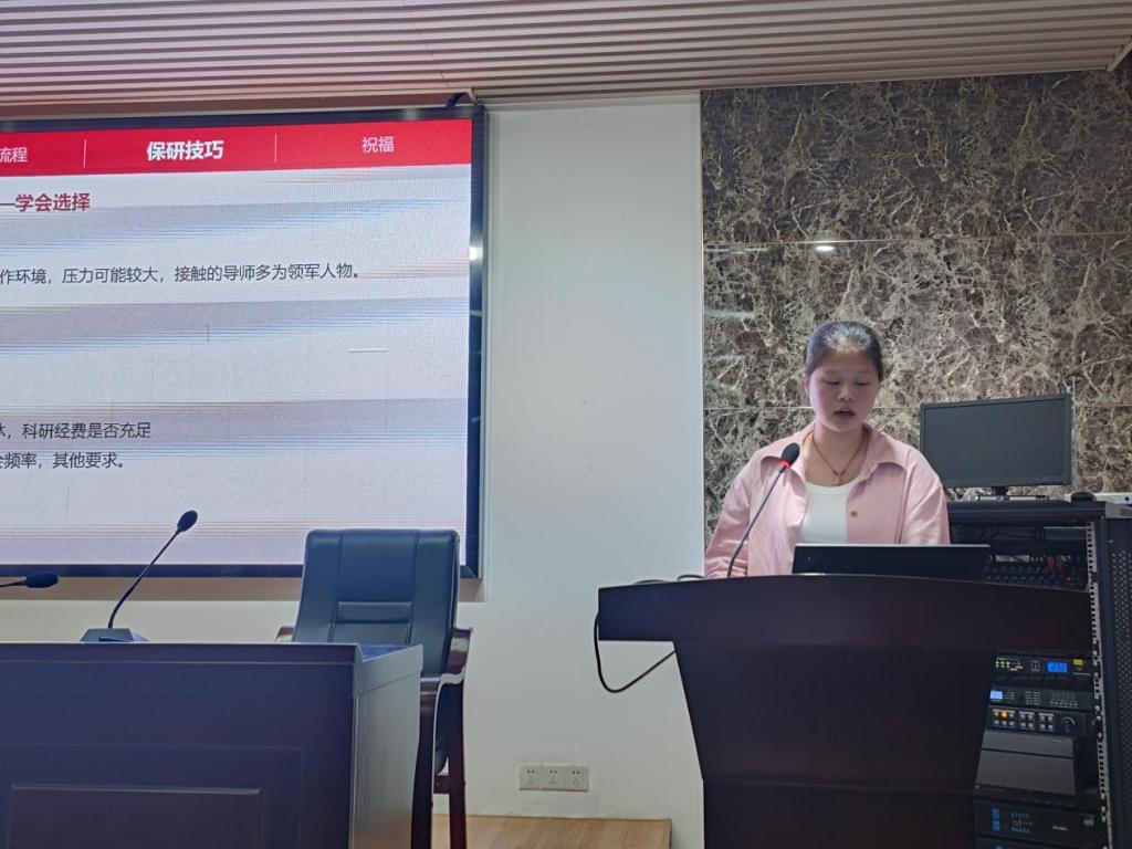 现场气氛热烈,同学们认真聆听,不时记录重点。在互动环节中,参会同学积极提问,保研学子们耐心解答,针对大家提出的关于保研资格获取、院校选择、专业方向确定等问题给予了详尽而实用的建议。交流会最后,23级代表为保研分享的学姐们送上的精美礼物,预祝他们毕业快乐,前程似锦。