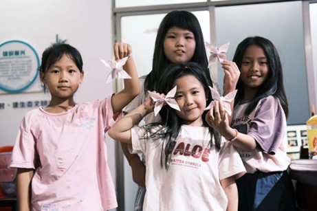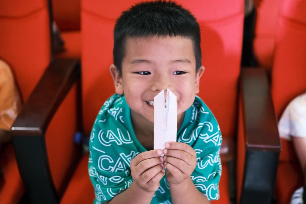 手工课是今天的“重头戏”。老师和同学们齐心协力,共同挑战“燕尾蝶”折纸。不用老师逐步指导,有的小朋友看一遍后就立马自己“捣鼓”出一个像模像样的蝴蝶,争着向老师炫耀。