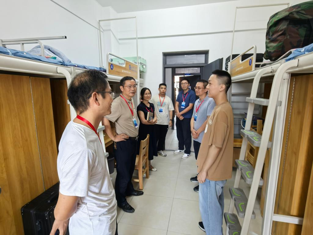 在学生宿舍,院领导和老师们与新生们亲切交谈,询问他们的住宿情况、学习情况、生活情况等。张国强书记对新生们的到来表示热烈欢迎,并鼓励新生们要尽快融入物电学院这个大家庭,珍惜大学时光,努力学习专业知识,积极参与校园活动,全面提升自己的综合素质。