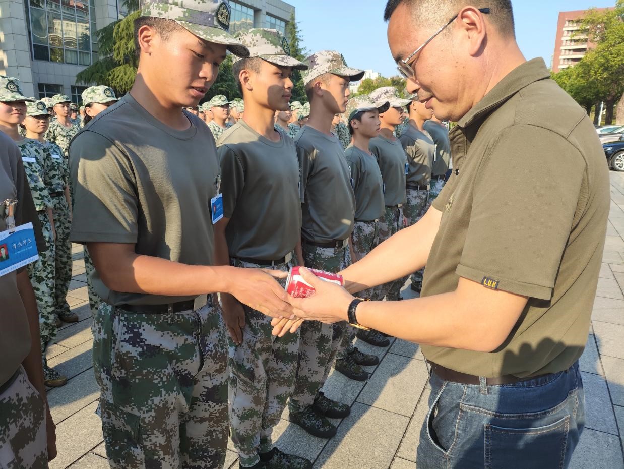 2024年9月23日下午4时,物电学院党委书记张国强、院党委副书记宋国宁等院领导以及全体辅导员,来到学校图书馆前坪,对正在紧张而有序地进行军训的2024级新生及辛勤指导的教官们进行了亲切的慰问。