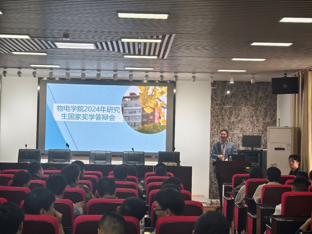 为扎实做好国家奖学金评选工作,充分发挥国家奖学金的激励、引导作用,在学院内营造勤奋学习、积极进取的优良学风,10月8日下午14:30,物电学院2024年研究生国家奖学金评审答辩会在理科楼B413举行。物电学院分管研究生工作副院长张卫兵教授出席答辩会并发言,青年教师曾波文、高恩多、刘凡三位老师担任点评专家,2024级全体研究生新生参加。