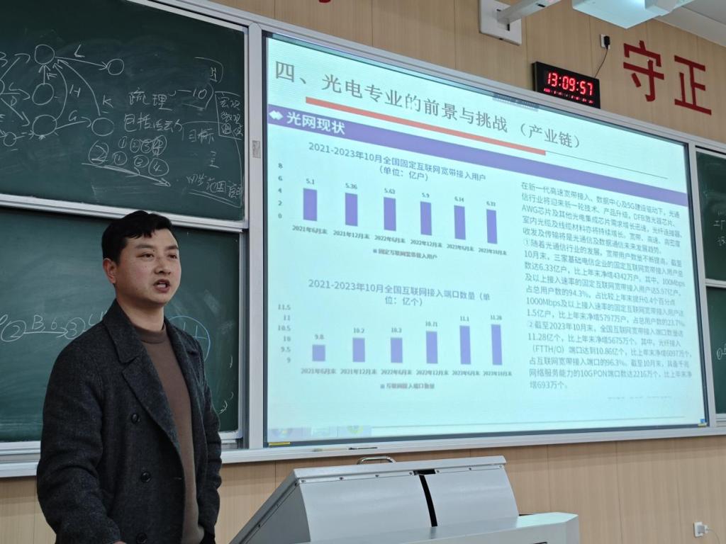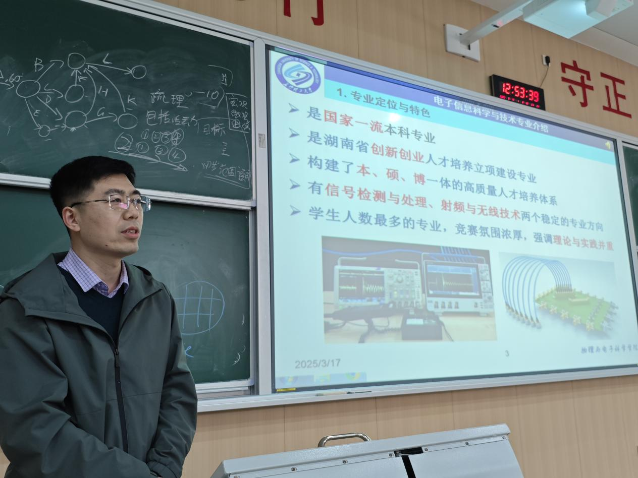 3月17日中午,物电学院2023级电子信息类专业分流宣讲会在综教B102举行。学院常务副院长邓科、电子信息系专业教师出席此次宣讲会,2023级电子信息类全体学生参加。会议由2023级辅导员姚巍主持。