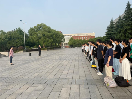 朝阳初绽,晨光熹微, 5 月 19 日7 时整,激昂的国歌划破宁静,鲜艳的红旗迎风升起。物理与电子科学学院24 级本科全体学生整齐列队,庄严肃穆,在图书馆前坪举行了一场庄严而富有意义的升旗仪式。学院党委副书记叶正芳,辅导员郭晨鑫、孟欣欣参会。